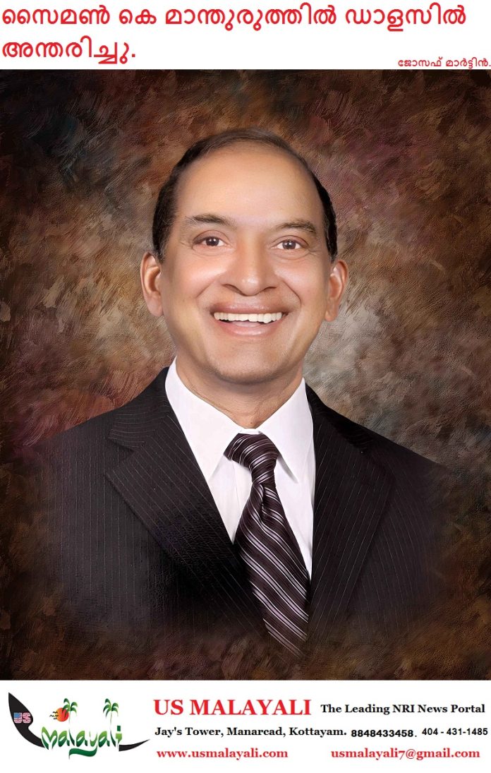 ഡാളസ് : കോട്ടയം കൈപ്പുഴയിൽ ലൂക്കോസ് മാന്തുരുത്തിലിന്റെയും അരീക്കര അന്നമ്മ ലൂക്കോസിന്റെയും മകനായ സൈമൺ മാന്തുരുത്തിൽ (75) ഡാളസിൽ അന്തരിച്ചു. ഭാര്യ: ലിസമ്മ ഇഗ്നേഷ്യസ് കാഞ്ഞിരപ്പള്ളി വെട്ടിക്കാട്ട് കുടുംബാംഗം.