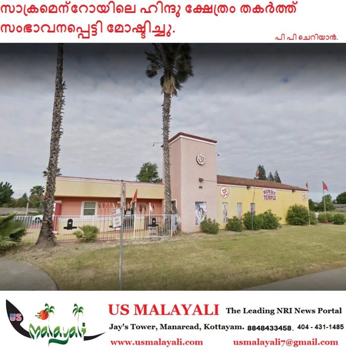 സാക്രമെന്റോ: ലാ മഞ്ച വേയിലെ ഹരി ഓം രാധാകൃഷ്ണ മന്ദിറിലേക് അതിക്രമിച്ചു കയറിയ രണ്ട് പ്രതികൾ ഇവിടെയുള്ള ഹിന്ദു ക്ഷേത്രം തകർത്ത് സംഭാവനപ്പെട്ടി മോഷ്ടിച്ചു.
