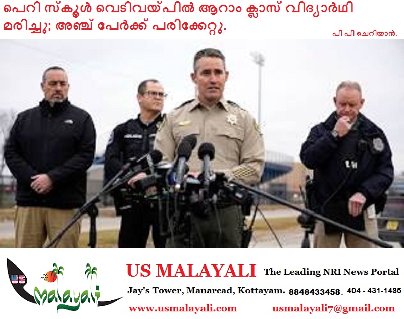 അയോവ :വ്യാഴാഴ്ച പുലർച്ചെ പെറി ഹൈസ്കൂളിൽ ആറ് പേർ വെടിയേറ്റതായും ഇതിൽ മരിച്ച ഒരാൾ ആറാം ക്ലാസ് വിദ്യാർത്ഥിയാണെന്നും പോലീസ് പറഞ്ഞു.പെറി ഹൈസ്കൂളിൽ നടന്ന വെടിവയ്പിൽ സംശയിക്കുന്നയാൾ 17 കാരനായ പെറി ഹൈസ്കൂൾ വിദ്യാർത്ഥി ഡിലൻ ബട്ലർ സ്കൂളിൽ സ്വയം വെടിയേറ്റ് മരിച്ചതായി അയോവ ഡിവിഷൻ ഓഫ് ക്രിമിനൽ ഇൻവെസ്റ്റിഗേഷൻ അസിസ്റ്റന്റ് ഡയറക്ടർ മിച്ച് മോർട്ട്വെഡ് ഉച്ചകഴിഞ്ഞ് വാർത്താ സമ്മേളനത്തിൽ പറഞ്ഞു. അയോവ സ്റ്റേറ്റ് ഫയർ മാർഷൽ നിരായുധനാക്കിയ സ്കൂളിൽ നിന്ന് സ്ഫോടകവസ്തുക്കൾ പോലീസ് കണ്ടെത്തി. പമ്പ് ആക്ഷൻ ഷോട്ട്ഗണും ചെറിയ കാലിബർ കൈത്തോക്കുമായിരുന്നു പ്രതിയുടെ കൈവശമെന്നും അദ്ദേഹം പറഞ്ഞു.