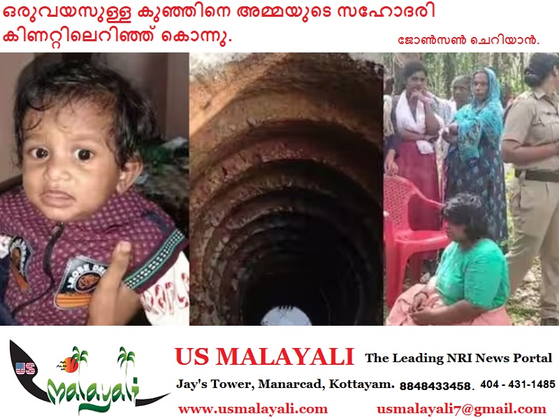 തിരുവനന്തപുരം വെള്ളനാട്ടിൽ ഒരു വയസുള്ള കുഞ്ഞിനെ കിണറ്റിൽ എറിഞ്ഞ് കൊല്ലപ്പെടുത്തി. കൊലപ്പെടുത്തിയത് ഉറിയാക്കോട് സ്വദേശി സിന്ധുവിന്റെ ഒരുവയസുള്ള ആൺ കുട്ടിയെ. കുഞ്ഞിനെ കൊലപ്പെടുത്തിയത് സിന്ധുവിന്റെ മനസികാസ്വാസ്ഥ്യമുള്ള സഹോദരി മഞ്ജു.