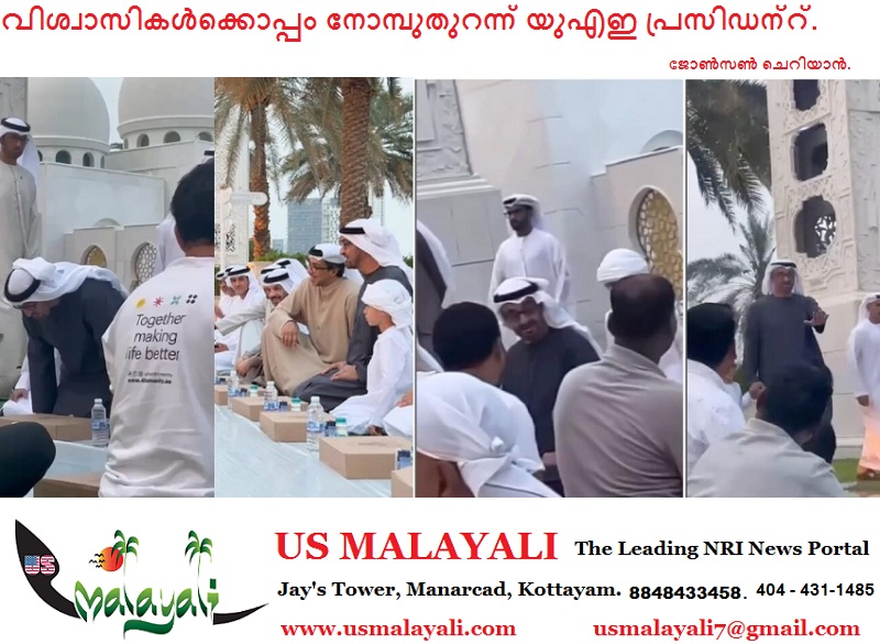 നോമ്പുതുറക്കാനായി സാധാരണ ജനങ്ങള്ക്കൊപ്പം ഇരുന്ന് യുഎഇ പ്രസിഡന്റ് ശൈഖ് മുഹമ്മദ് ബിന് സായിദ് അല് നഹ്യാന്. അബുദാബിയിലെ പ്രശസ്തമായ ശൈഖ് സായിദ് ഗ്രാന്ഡ് മോസ്കില് ഇന്നലെ നോമ്പുതുറയ്ക്കെത്തിയവരെ ഞെട്ടിച്ചായിരുന്നുയുഎഇ പ്രസിഡന്റ് ശൈഖ് മുഹമ്മദ് ബിന് സായിദ് അല് നഹ്യാന്റെ സന്ദർശനം. ഖലീജ് ടൈംസ് ആണ് വാർത്ത റിപ്പോർട്ട് ചെയുന്നത്.