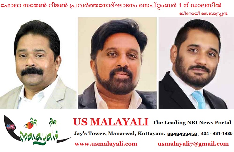 ഡാലസ്: ഫോമയുടെ സതേണ് റീജന്റെ പ്രവര്ത്തന ഉത്ഘാടനം സെപ്റ്റംബര് 1 ന്, ഇര്വിംഗ് പസന്ത് ഓഡിറ്റോറിയത്തില് വച്ച് ഫോമാ അന്തര്ദേശീയ പ്രസിഡന്റ് ബേബി മണക്കുന്നേല് നിര്വ്വഹിക്കും. ചടങ്ങിനോടനുബന്ധിച്ചു സ്ഥാനമൊഴിയുന്ന ആര്വിപിയായ മാത്യൂസ് മുണ്ടയ്ക്കല് 2024 2026 ലെ റീജണല് വൈസ് പ്രസിഡന്റായി തിരഞ്ഞെടുക്കപ്പെട്ട ബിജു ലോസനു അധികാരം കൈമാറും.