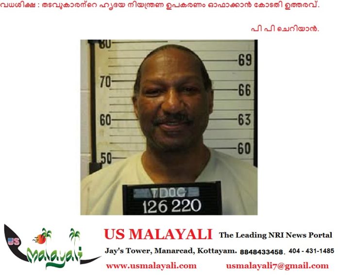 നാഷ്വില്ലെ, ടെന്നസി (എപി): വധശിക്ഷയ്ക്ക് വിധിക്കപ്പെട്ട തടവുകാരനായ ബൈറൺ ബ്ലാക്കിന്റെ ശരീരത്തിൽ ഘടിപ്പിച്ചിട്ടുള്ള ഹൃദയ നിയന്ത്രണ ഉപകരണം (Implantable Cardioverter-Defibrillator – ICD) വിഷം കുത്തിവെക്കുമ്പോൾ പ്രവർത്തനരഹിതമാക്കാൻ ടെന്നസി അധികൃതരോട് ജഡ്ജി റസ്സൽ പെർകിൻസ് ഉത്തരവിട്ടു. ഓഗസ്റ്റ് 5-ന് വധശിക്ഷ നടപ്പാക്കാനിരിക്കെ, ഉപകരണം പ്രവർത്തിക്കുന്നത് ഞെട്ടലിനും കടുത്ത വേദനയ്ക്കും കാരണമായേക്കാമെന്ന അഭിഭാഷകരുടെ വാദം കണക്കിലെടുത്താണ് വിധി.