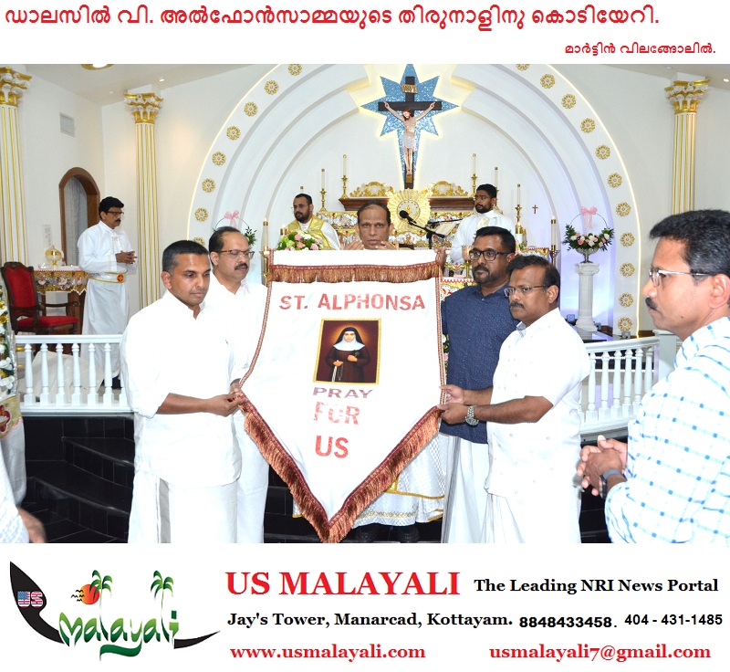 കൊടിയേറ്റിനും തുടർന്ന് നടന്ന ദിവ്യബലിക്കും ഇടവക വികാരി ഫാ. മാത്യൂസ് കുര്യൻ മുഞ്ഞനാട്ട്, അസി. വികാരി ഫാ. ജിമ്മി എടക്കുളത്തൂർ എന്നിവർ കാർമ്മികത്വം വഹിച്ചു. അൽഫോൻസാമ്മയുടെ ജീവിതം മാതൃയാക്കുവാനും തിരുനാളുകളിൽ പങ്കെടുത്തു ആത്മീയ കൃപാവരങ്ങൾ നേടുവാനും ഏവരേയും സ്വാഗതം ചെയ്യുന്നതായി ഇടവക വികാരിമാർ അറിയിച്ചു.