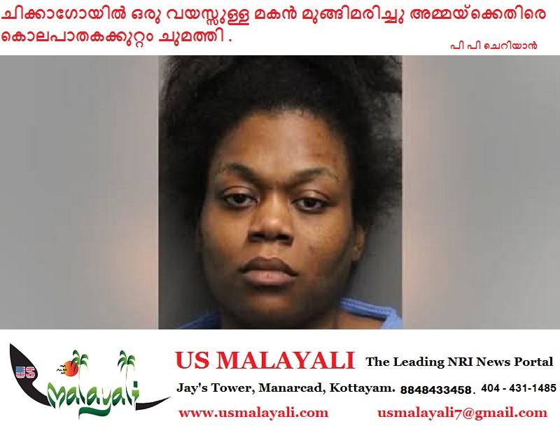 ചിക്കാഗോ: ഒരു വയസ്സുള്ള മകൻ മുങ്ങിമരിച്ച സംഭവത്തിൽ 31 വയസ്സുകാരിയായ സൂറ അമോണിനെതിരെ കൊലപാതകക്കുറ്റം ചുമത്തിയതായി അധികൃതർ അറിയിച്ചു. മിഷിഗൺ തടാകത്തിൽ വെച്ചാണ് കുട്ടി മുങ്ങിമരിച്ചതെന്നാണ് റിപ്പോർട്ടുകൾ.
