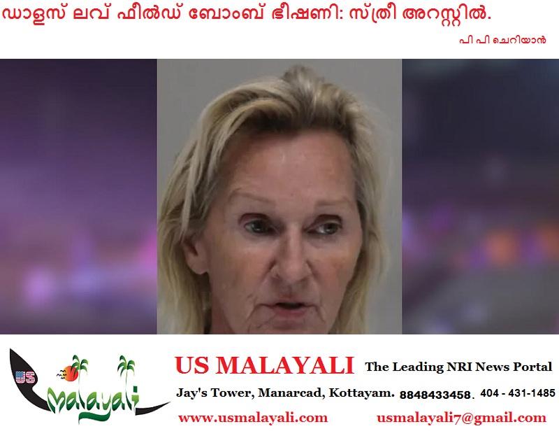 ഡാളസ്: ഡാളസ് ലവ് ഫീൽഡ് വിമാനത്താവളത്തിൽ ബോംബ് ഭീഷണി മുഴക്കിയ 67 വയസ്സുകാരി റെബേക്ക ഫിലിപ്സിനെ പോലീസ് അറസ്റ്റ് ചെയ്തു. ചൊവ്വാഴ്ച വൈകുന്നേരം 6:45 ഓടെ വിമാനത്താവളത്തിലെ ഗേറ്റ് 10-ൽ വെച്ചാണ് സംഭവം.