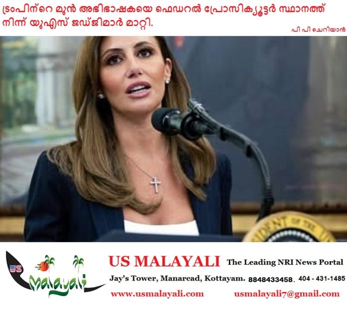 ട്രംപിന്റെ മുൻ അഭിഭാഷകയെ ഫെഡറൽ പ്രോസിക്യൂട്ടർ സ്ഥാനത്ത് നിന്ന് യുഎസ് ജഡ്ജിമാർ മാറ്റി-പി പി ചെറിയാൻ