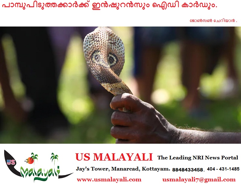 പാമ്പുപിടുത്തക്കാർക്ക് ഇൻഷുറൻസും ഐഡി കാർഡും നൽകും. മഹാരാഷ്ട്ര സർക്കാർ ആണ് ചരിത്രപരമായ തീരുമാനമെടുത്തത്. അപകട ഇൻഷുറൻസ് ആയി 10 ലക്ഷം രൂപ കുടുംബത്തിന് ലഭിക്കും. സംസ്ഥാനത്തെ 12,000ഓളം പാമ്പ് പിടുത്തക്കാർക്ക് ആശ്വാസം ലഭിക്കുന്നതാണ് നടപടി. എൻഡിടിവി ഉൾപ്പെടെയുള്ള ദേശീയ മാധ്യമങ്ങൾ വാർത്ത റിപ്പോർട്ട് ചെയ്യുന്നു.