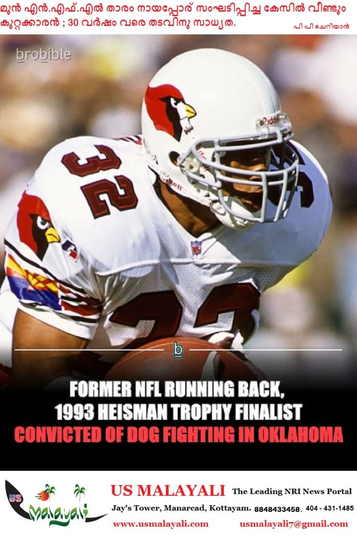 മുൻ എൻ.എഫ്.എൽ. താരം ലെഷോൺ ജോൺസൺ നായപ്പോര് സംഘടിപ്പിച്ച കേസിൽ വീണ്ടും ശിക്ഷിക്കപ്പെട്ടു. ആറ് കേസുകളിലാണ് ഫെഡറൽ ജൂറി അദ്ദേഹത്തെ കുറ്റക്കാരനെന്ന് കണ്ടെത്തിയത്. ഇതോടെ 30 വർഷം വരെ തടവും, ഒരു കോടിയിലധികം രൂപ പിഴയും ലഭിച്ചേക്കാമെന്നാണ് റിപ്പോർട്ടുകൾ.