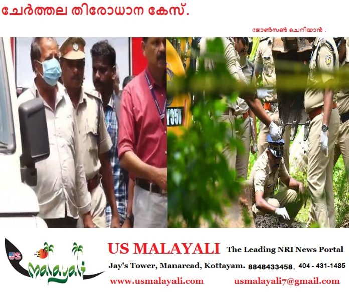 ചേർത്തല തിരോധാന കേസുകളിൽ സെബാസ്റ്റ്യന്റെ സഹായികളെ കേന്ദ്രീകരിച്ച് ക്രൈംബ്രാഞ്ച് അന്വേഷണം തുടരുന്നു. സെബാസ്റ്റ്യന്റെ സുഹൃത്ത് റോസമ്മയുടെ വീട്ടിൽ നടത്തിയ പരിശോധനയിൽ കാര്യമായൊന്നും കണ്ടെത്താനായില്ലെങ്കിലും, റോസമ്മ ഉൾപ്പെടെ സംശയ നിഴലിൽ ഉള്ളവരെ കേന്ദ്രീകരിച്ചാണ് തുടരന്വേഷണം. ബിന്ദു പത്മനാഭൻ, ഐഷ, സിന്ധു തിരോധാന കേസുകളിലാണ് ആലപ്പുഴ ക്രൈംബ്രാഞ്ച് യൂണിറ്റ് അന്വേഷണം നടത്തുന്നത്.