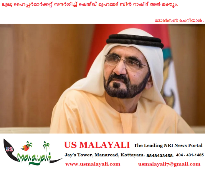 ദുബായ് സിലിക്കൺ സെൻട്രൽ മാളിലെ ലുലു ഹൈപ്പർമാർക്കറ്റ് സന്ദർശിച്ച് യുഎഇ വൈസ് പ്രസിഡന്റും പ്രധാനമന്ത്രിയും ദുബായ് ഭരണാധികാരിയുമായ ഹിസ് ഹൈനസ് ഷെയ്ഖ് മുഹമ്മദ് ബിൻ റാഷിദ് അൽ മക്തൂം. ഒരു മണിക്കൂറിലേറെ സിലിക്കൺ സെൻട്രൽ മാളിൽ അദേഹം സന്ദർശനം നടത്തി.