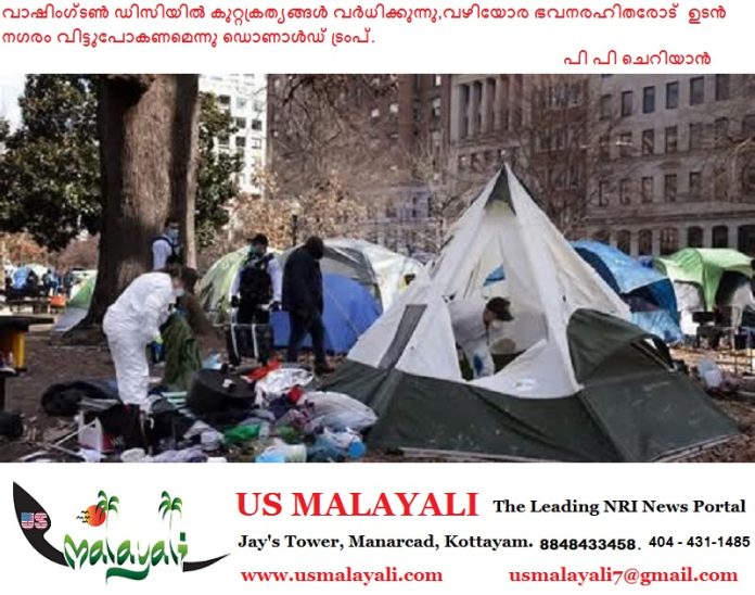 ഏകദേശം 3,782 ഭവനരഹിതർ വാഷിംഗ്ടൺ ഡിസിയിൽ ഉണ്ടെന്നാണ് കണക്കുകൾ. ഇതിൽ 800 പേർ തെരുവുകളിലാണ് താമസിക്കുന്നത്.