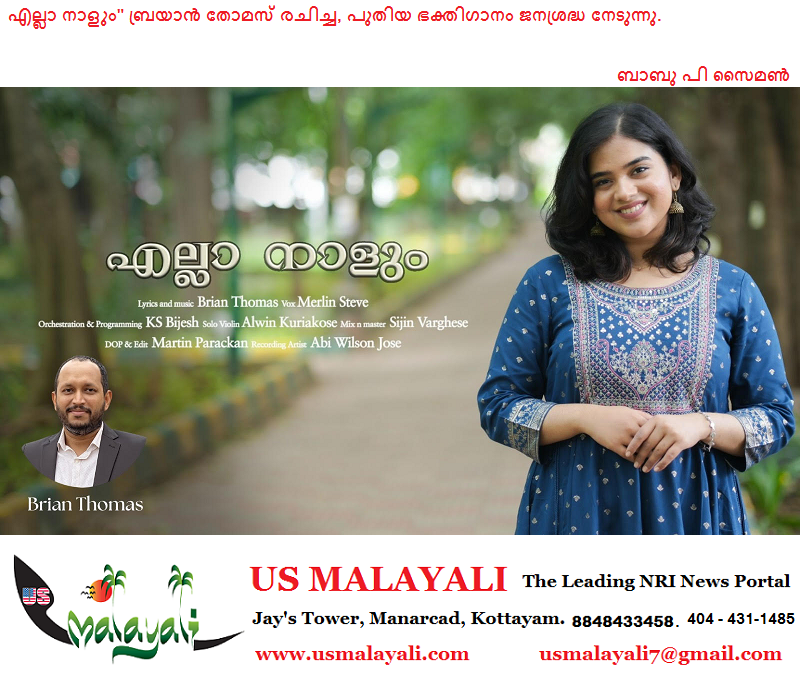ഡാളസ് : യുവ സംഗീത പ്രതിഭകളുടെ കൂട്ടായ്മയിൽ പിറന്ന മറ്റൊരു പുതിയ ഭക്തിഗാനം, “എല്ലാ നാളും”, സംഗീത പ്രേമികൾക്കിടയിൽ ശ്രദ്ധ നേടുന്നു. പ്രത്യാശയും വിശ്വാസവും നിറയുന്ന വരികളും ഹൃദയത്തിൽ തൊടുന്ന ഈണവുമാണ് ഈ ഗാനത്തെ വേറിട്ടുനിർത്തുന്നത്.