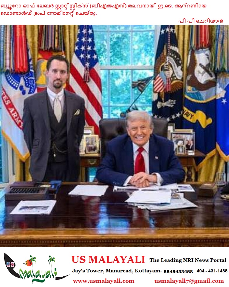 വാഷിംഗ്ടൺ:ബ്യൂറോ ഓഫ് ലേബർ സ്റ്റാറ്റിസ്റ്റിക്സ് (ബിഎൽഎസ്) തലവനായി ഇ.ജെ. ആന്റണിയെ ഡൊണാൾഡ് ട്രംപ് നോമിനേറ്റ് ചെയ്തു ദുർബലമായ തൊഴിൽ ഡാറ്റയെ തുടർന്ന് മുൻ മേധാവിയെ പുറത്താക്കിയതിന് പിന്നാലെയാണ് ബ്യൂറോ ഓഫ് ലേബർ സ്റ്റാറ്റിസ്റ്റിക്സ് (ബിഎൽഎസ്) തലവനായി യാഥാസ്ഥിതിക സാമ്പത്തിക വിദഗ്ദ്ധനായ ഇ.ജെ. ആന്റണിയെ യുഎസ് പ്രസിഡന്റ് ഡൊണാൾഡ് ട്രംപ് തിരഞ്ഞെടുത്തത് . ഹെറിറ്റേജ് ഫൗണ്ടേഷനിലെ ഫെഡറൽ ബജറ്റ് അനലിസ്റ്റാണ് ആന്റണി.