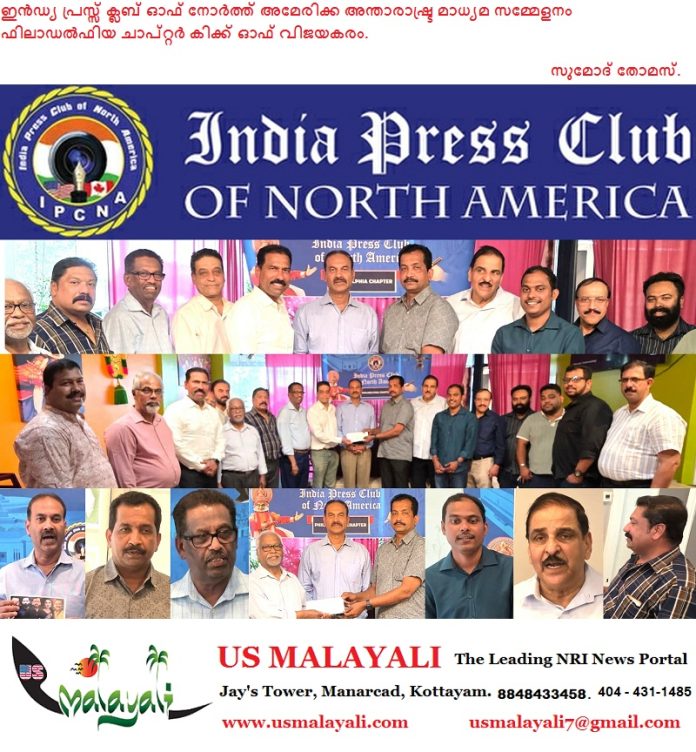 ഫിലാഡൽഫിയ: ഇന്ത്യ പ്രസ് ക്ലബ് ഓഫ് നോർത്ത് അമേരിക്കയുടെ ന്യൂ ജേഴ്സിയിൽ നടക്കുന്ന അന്താരാഷ്ട്ര മാധ്യമ കോൺഫറൻസിനു മുന്നോടിയായി ഫിലാഡൽഫിയ ചാപ്റ്റർ സംഘടിപ്പിച്ച കിക്ക് ഓഫ് സമ്മേളനം മയൂര റെസ്റ്റാറൻറ്റിൽ വച്ച് നടന്നു. ഇൻഡ്യ പ്രസ്സ് ക്ലബ് ഓഫ് നോർത്ത് അമേരിക്ക ഫിലാഡൽഫിയ ചാപ്റ്റർ പ്രെസിഡൻറ്റ് അരുൺ കോവാട്ട് അധ്യക്ഷത വഹിച്ച ചടങ്ങിൽ നാഷണൽ പ്രെസിഡൻറ്റ് സുനിൽ ട്രൈസ്റ്റാർ, നാഷണൽ ജനറൽ സെക്രട്ടറി ഷിജോ പൗലോസ്, നിയുക്ത പ്രെസിഡൻറ്റ് രാജു പള്ളത്തു, കൂടാതെ ഫിലാഡൽഫിയയിലെ പ്രസ് ക്ലബ് അംഗങ്ങളും, സാംസ്കാരിക സാമൂഹിക നേതാക്കളും ഈ ചടങ്ങിൽ പങ്കെടുത്തു. ചാപ്റ്റർ സെക്രട്ടറി സുമോദ് നെല്ലിക്കാല യോഗ നടപടികൾ നിയന്ത്രിച്ചു. ട്രെഷറർ വിൻസെൻറ്റ് ഇമ്മാനുവേൽ ഇൻഡ്യ പ്രെസ് ക്ലബ് ഓഫ് നോർത്ത് അമേരിക്ക അന്താരാഷ്ട്ര മാധ്യമ കോൺഫെറൻസിനു ഫിലാഡൽഫിയ ചാപ്റ്ററിൻറ്റെ എല്ലാവിധ സഹകരണങ്ങളും അറിയിക്കുകയുണ്ടായി.