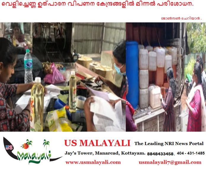 വെളിച്ചെണ്ണയുടെ വില വര്ധിച്ചുവരുന്ന സാഹചര്യത്തില് ഗുണനിലവാരം സംബന്ധിച്ച പരാതികള് വകുപ്പിന് ലഭിക്കുന്നുണ്ട്. ഇതിന്റെ അടിസ്ഥാനത്തിലാണ് രഹസ്യ പരിശോധനകള് നടത്തിയത്. പരിശോധനകള് തുടരുമെന്ന് ആരോഗ്യ മന്ത്രി വീണാ ജോർജ് വ്യക്തമാക്കി. അസിസ്റ്റന്റ് ഭക്ഷ്യസുരക്ഷാ കമ്മീഷണര്മാരുടെ നേതൃത്വത്തില് പ്രത്യേക സ്ക്വാഡുകളാണ് പരിശോധനകള് നടത്തിയത്. ഏറ്റവുമധികം വ്യാജ വെളിച്ചെണ്ണ പിടിച്ചെടുത്തത് കൊല്ലം ജില്ലയില് നിന്നാണ്. കേര സൂര്യ, കേര ഹരിതം ബ്രാൻഡ് ഉൾപ്പടെ 9337 ലിറ്റർ വെളിച്ചെണ്ണയാണ് കൊല്ലം ജില്ലയിൽ നിന്ന് മാത്രമായി പിടിച്ചെടുത്തത്. രണ്ടാമതായി ആലപ്പുഴ ജില്ലയിൽ നിന്നും മായം കലർന്ന വെളിച്ചെണ്ണ പിടിച്ചെടുത്തു.