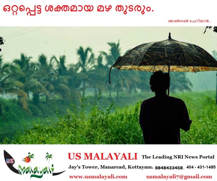 സംസ്ഥാനത്ത് ഒറ്റപ്പെട്ട ശക്തമായ മഴ തുടരാൻ സാധ്യതയെന്ന് കേന്ദ്ര കാലാവസ്ഥാ വകുപ്പിന്റെ മുന്നറിയിപ്പ്. മധ്യ കേരളത്തിലും വടക്കൻ കേരളത്തിലും മലയോര മേഖലകളിലും മഴ കൂടുതൽ ലഭിക്കാൻ സാധ്യത. എറണാകുളം, തൃശൂർ, മലപ്പുറം, കോഴിക്കോട്, കണ്ണൂർ, കാസർഗോഡ് ജില്ലകളിൽ യെല്ലോ അലർട്ട് പ്രഖ്യാപിച്ചു.