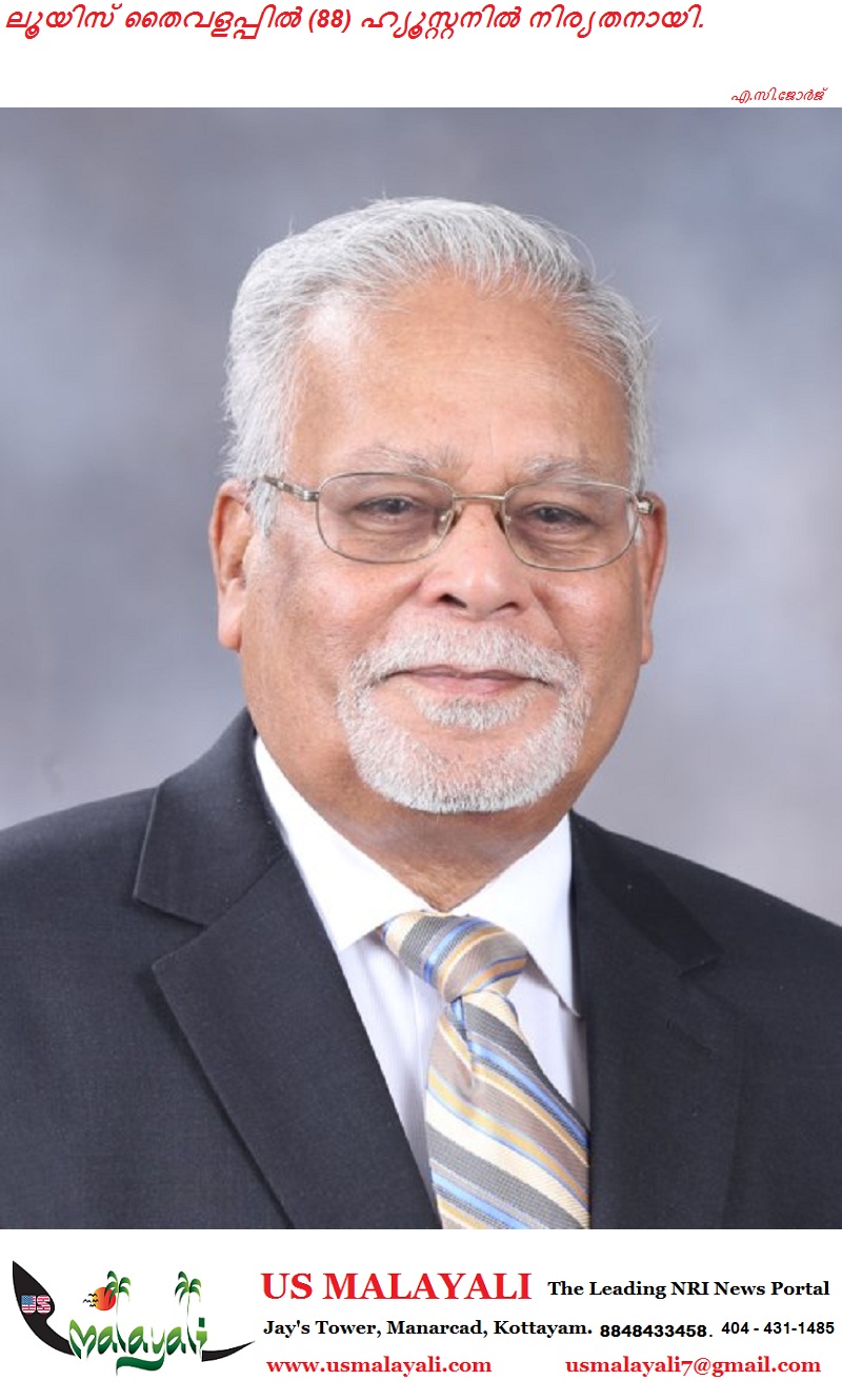 ഹ്യൂസ്റ്റൺ: വളരെ കാലമായി ഹ്യൂസ്റ്റനിൽ അതിവസിക്കുന്ന ലൂയിസ് തൈവളപ്പിൽ (88) വാർദ്ധക്യ സഹജമായ അസുഖങ്ങളാൽ ഓഗസ്റ്റ് 13, 2025നു നിര്യതനായി. കേരളത്തിലെ ഇരിങ്ങാലക്കുടയിൽ ഫെബ്രുവരി 10, 2037 ലാണു ജനനം. നിര്യതരായ ആൻ്റണിയും റോസയുമാണ് മാതാപിതാക്കൾ. അവരുടെ 5 മക്കളിൽ ഏറ്റവും ഇളയ മകനായിരുന്നു മരണപ്പെട്ട ലൂയിസ്. ട്രീസാ ലൂയിസ് ആണു ഭാര്യ. ആൻ്റണി, ജോസഫ്, ജോർജ് എന്നിവരാണു മക്കൾ. മരുമക്കൾ ദീപ, ലിസ. 6 കൊച്ചുമക്കൾ: സോഫിയ, ജേക്കബ്, ഇസബെല്ലാ, ഗബ്രിയേല, റേച്ചൽ, വില്യം എന്നിവരുമുണ്ട്.