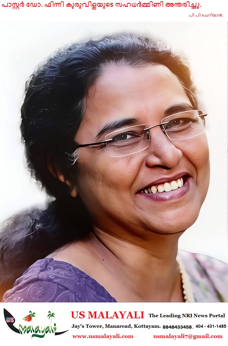 വടവത്തൂർ : ശാലേം ബൈബിൾ കോളേജ് & സെമിനാരി പ്രിൻസിപ്പൽ പാസ്റ്റർ ഡോ. ഫിന്നി കുരുവിളയുടെ സഹധർമ്മിണിയും, വടവത്തൂർ എബെനേസർ ഇന്ത്യ പെന്തകോസ്ത് ദൈവസഭയിലെ അംഗവുമായ റാന്നി നെല്ലിക്കാമൺ വലിയകാലയിൽ കുടുംബാംഗം സിസ്റ്റർ ലിസി ഫിന്നി (56 വയസ്സ്) അന്തരിച്ചു