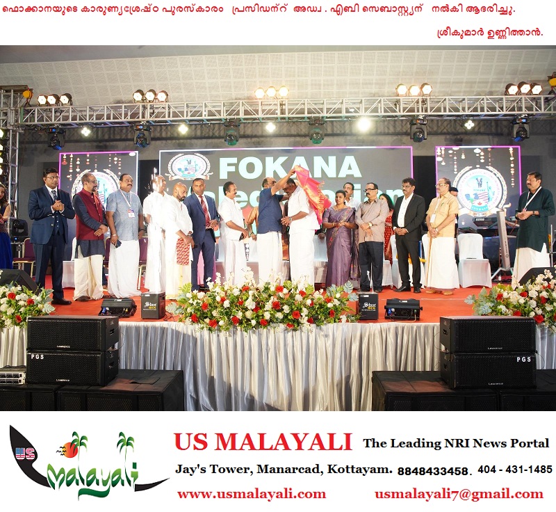 ന്യൂ യോർക്ക് :ഫൊക്കാനയുടെ കാരുണ്യശ്രേഷ്ഠ പുരസ്കാരം യുക്മ പ്രസിഡന്റ് അഡ്വ . എബി സെബാസ്റ്റ്യന് നൽകി ആദരിച്ചു . ഫൊക്കാന കേരള കൺവൻഷന്റെ സമാപന സമ്മേളനനത്തിൽ വെച്ചാണ് ധനകാര്യമന്ത്രി കെ.എൻ.ബാലഗോപാൽ യുക്മ പ്രസിഡന്റ് അഡ്വ . എബി സെബാസ്റ്റ്യന് ആദരിച്ചത്. ചങ്ങനാശേരി എംഎൽഎ ജോബ് മൈക്കിൾ, കേരളാ ചീഫ് സെക്രട്ടറി എ.ജയ് തിലക്(ഐഎഎസ്),ബിൻസി സെബാസ്റ്റ്യൻ(മുൻസിപ്പൽ കൗൺസിലർ),കെപിസിസി വൈസ് പ്രസിഡന്റ് വി.പി.സജീന്ദ്രൻ,സജിമോൻ ആന്റണി(പ്രസിഡന്റ്),ശ്രീകുമാർ ഉണ്ണിത്താൻ(ജനറൽ സെക്രട്ടറി),ജോയി ചാക്കപ്പൻ (ട്രഷർ )സിഎസ്ഐ ചർച്ച് ബിഷപ്പ്,എബി എബ്രഹാം,അനിൽ അടൂർ(ഏഷ്യാനെറ്റ് ന്യൂസ്),ശരത്ചന്ദ്രൻ(കൈരളി), ജോയ് ഇട്ടൻ (കേരള കൺവൻഷൻ ചെയർ),ഫൊക്കാന ഭരണസമിതി അംഗങ്ങൾ,ഫൊക്കാനയുടെ മുൻ പ്രസിഡന്റുമാർ തുടങ്ങി നിരവധിപേർ വേദിയിൽ സന്നിഹിതരായിരുന്നു.