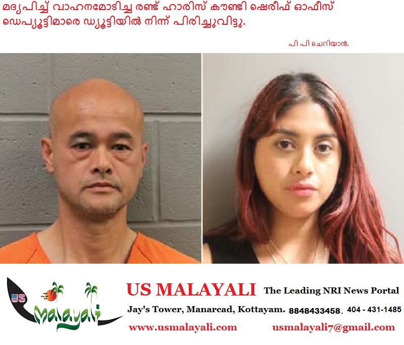 ഹൂസ്റ്റൺ: മദ്യപിച്ച് വാഹനമോടിച്ചതിന് രണ്ട് ഹാരിസ് കൗണ്ടി ഷെരീഫ് ഓഫീസ് ഡെപ്യൂട്ടിമാരെ അറസ്റ്റ് ചെയ്തു. വ്യത്യസ്ത സംഭവങ്ങളിലായി കഴിഞ്ഞ വാരാന്ത്യത്തിലാണ് ഇരുവരെയും അറസ്റ്റ് ചെയ്തത്.