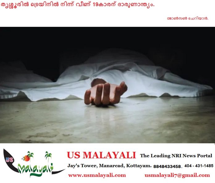 തൃശ്ശൂരില് ട്രെയിനില് നിന്നും പുറത്തേക്ക് തെറിച്ച് വീണ് വിദ്യാര്ഥിക്ക് ദാരുണാന്ത്യം. പട്ടാമ്പി സ്വദേശി വിഷ്ണു ആണ് മരിച്ചത്. 19 വയസായിരുന്നു. പട്ടാമ്പി എസ്.എന്.ജി.എസ് കോളേജിലെ ബികോം വിദ്യാര്ഥിയാണ്.ആലപ്പുഴ – കണ്ണൂര് എക്സിക്യൂട്ടീവ് ട്രെയിനിലെ ജനറല് കോച്ചില് നിന്നുമാണ് യുവാവ് വീണത്. തൃശ്ശൂര് മിഠായി ഗേറ്റിന് സമീപമായിരുന്നു അപകടം. ഇരിഞ്ഞാലക്കുടയില് നിന്നും പട്ടാമ്പിയിലേക്കുള്ള യാത്രക്കിടയായിരുന്നു സംഭവം. സുഹൃത്തുമൊന്നിച്ച് ഡോറിന് സമീപം നിന്ന് യാത്ര ചെയ്യുന്നതിനിടെ വിഷ്ണു അബദ്ധത്തില് പുറത്തേക്ക് വീഴുകയായിരുന്നു. യുവാവിന്റെ തല വേര്പ്പെട്ട നിലയിലായിരുന്നു. തൃശൂര് റെയില്വേ പൊലീസ് മൃതദേഹം ആശുപത്രിയിലേക്ക് മാറ്റി.