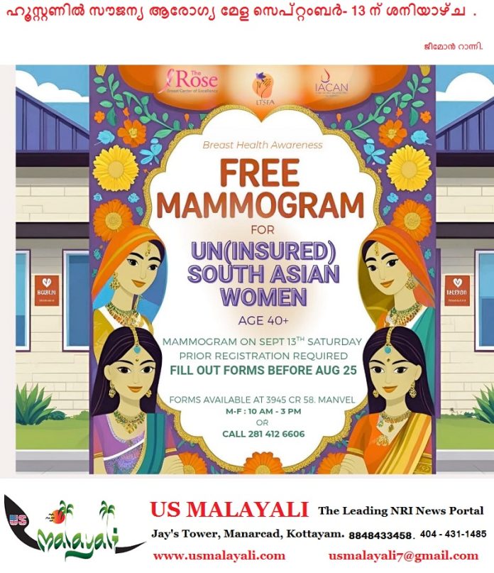 കൂടുതൽ വിവരങ്ങൾക്ക് 281 402 6585 എന്ന നമ്പറിൽ