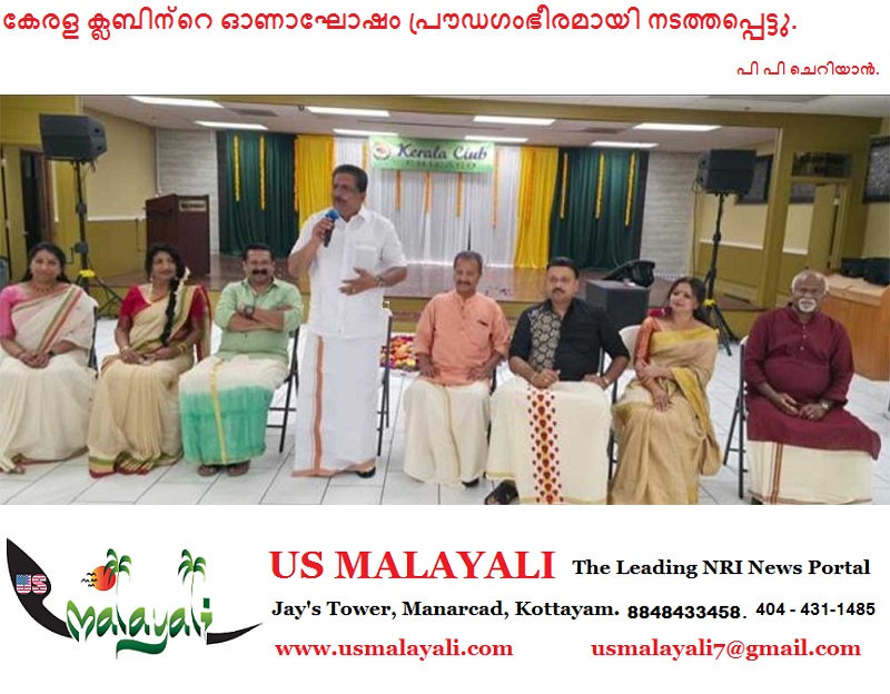 ചിക്കാഗോ: കേരള ക്ലബിന്റെ ഓണാഘോഷം ഓഗസ്റ്റ് 30-ന് ശനിയാഴ്ച ഡസ്പ്ലെയിന്സിലുള്ള ക്നാനായ കമ്യൂണിറ്റി സെന്ററില് വെച്ച് പ്രൗഡഗംഭീരമായി നടത്തപ്പെട്ടു. കടുത്തുരുത്തി എം.എല്.എ മോന്സ് ജോസഫ് മുഖ്യാതിഥിയായിരുന്നു.