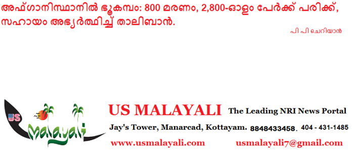 അഫ്ഗാനിസ്ഥാനിലുണ്ടായ ശക്തമായ ഭൂകമ്പത്തിൽ 800 പേർ മരിക്കുകയും 2,800-ഓളം പേർക്ക് പരിക്കേൽക്കുകയും ചെയ്തതായി അധികൃതർ അറിയിച്ചു. രാജ്യത്തെ താലിബാൻ ഭരണകൂടം അന്താരാഷ്ട്ര സഹായം അഭ്യർത്ഥിച്ചിട്ടുണ്ട്.