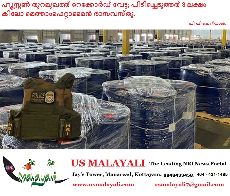പോർട്ട് ഓഫ് ഹൂസ്റ്റണിൽ നടന്ന റെയ്ഡിൽ, ഹോംലാൻഡ് സെക്യൂരിറ്റി ഇൻവെസ്റ്റിഗേഷൻസ് (എച്ച്എസ്ഐ) ഏജൻറുമാർ ആറ് കണ്ടെയ്നറുകളിൽ നിറച്ച ബെൻസൈൽ ആൽക്കഹോളും ആറ് കണ്ടെയ്നറുകളിൽ എൻ-മീഥൈൽ ഫോർമാമൈഡും പിടിച്ചെടുത്തു. മയക്കുമരുന്ന് നിർമ്മാണത്തിന് ഉപയോഗിക്കുന്ന ഈ രാസവസ്തുക്കൾക്ക് 569 മില്യൺ ഡോളറിലധികം വിലമതിക്കുന്ന 190,000 കിലോഗ്രാം മെത്ത് ഉത്പാദിപ്പിക്കാൻ കഴിയുമെന്ന് അധികൃതർ അറിയിച്ചു.