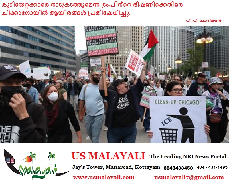 ചിക്കാഗോ: കുടിയേറ്റക്കാരെ കൂട്ടത്തോടെ നാടുകടത്തുമെന്ന ട്രംപ് ഭരണകൂടത്തിൻ്റെ ഭീഷണിക്കെതിരെ ചിക്കാഗോയിൽ ആയിരക്കണക്കിന് ആളുകൾ സമാധാനപരമായ പ്രതിഷേധ റാലി നടത്തി. കുടുംബങ്ങൾ, മുൻ സൈനികർ, യുവാക്കൾ എന്നിവർ ഉൾപ്പെടെ 3,000-ത്തോളം പേർ പങ്കെടുത്ത റാലി കോൺഗ്രസ് പ്ലാസ ഗാർഡനിൽ നിന്ന് ആരംഭിച്ച് ട്രംപ് ടവറിന് മുന്നിലൂടെ കടന്നുപോയി.