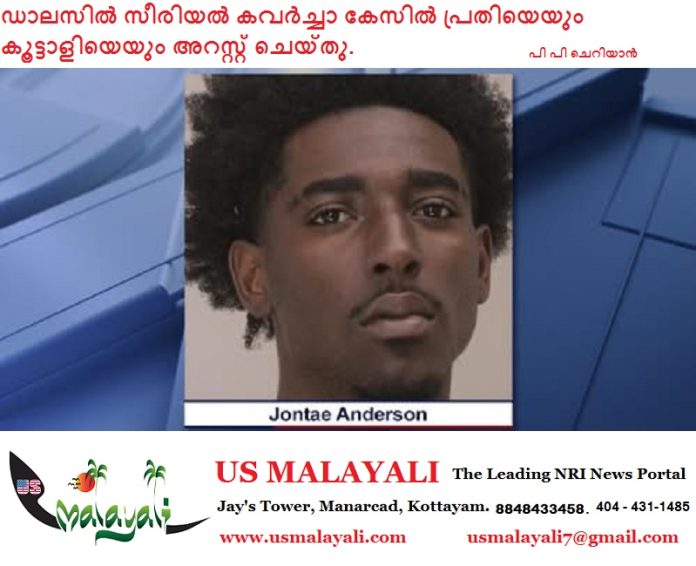 ഡാളസ് :സീരിയൽ കവർച്ചാ കേസിൽ പ്രതിയെയും കൂട്ടാളിയെയും പോലീസ് അറസ്റ്റ് ചെയ്തു. ഓഗസ്റ്റ് അവസാനത്തോടെ നോർത്ത് ഈസ്റ്റ് ഡാളസ് സമൂഹത്തിൽ നടന്ന നിരവധി സായുധ കവർച്ചകളുമായി ബന്ധപ്പെട്ട് 19 വയസ്സുകാരനായ ജോണ്ടേ ആൻഡേഴ്സനെ പോലീസ് അറസ്റ്റ് ചെയ്തു. ഇയാളുടെ കൂട്ടാളി 21 വയസ്സുകാരനായ കർട്ടിസ് കാർട്ടറെയും മറ്റ് ചില കേസുകളുമായി ബന്ധപ്പെട്ട് പോലീസ് കസ്റ്റഡിയിലെടുത്തു.