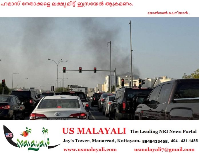 ദോഹയിൽ നിരവധി സ്ഫോടനങ്ങൾ ഉണ്ടായെന്ന് റിപ്പോർട്ട്. ഹമാസ് നേതാക്കളെ ലക്ഷ്യമിട്ട് ഇസ്രായേൽ ആക്രമണം നടത്തിയെന്നാണ് റിപ്പോർട്ടുകൾ. ബോംബർ ജെറ്റുകൾ ഹമാസ് നേതാക്കളെ ലക്ഷ്യമിട്ടെന്ന് ഇസ്രായേൽ. നിരവധി തവണ സ്ഫോടനം കേട്ടെന്ന് ദൃക്സാക്ഷികളെ ഉദ്ധരിച്ച് റോയിറ്റേഴ്സ് റിപ്പോർട്ട് ചെയ്തു.