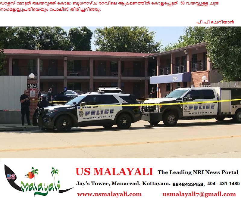 ഡാളസ് — ബുധനാഴ്ച രാവിലെ ഡാളസിലെ ഒരു മോട്ടലിൽ ഒരാളെ തലയറുത്ത് കൊലപ്പെടുത്തി, ഒരു പ്രതി കസ്റ്റഡിയിലുണ്ടെന്ന് പോലീസ് വൃത്തങ്ങൾ പറയുന്നു. ഇരുവരെയും ഇപ്പോൾ തിരിച്ചറിഞ്ഞു.
