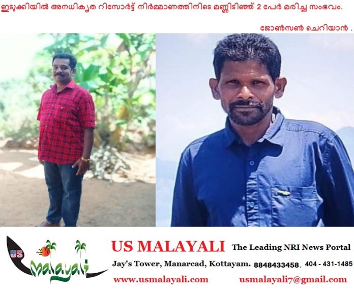 ഇടുക്കി ചിത്തിരപുരത്ത് മണ്ണിടിഞ്ഞു വീണു മരിച്ച തൊഴിലാളികളുടെ പോസ്റ്റ്മോർട്ടം ഇന്ന് നടക്കും. ആനച്ചാൽ സ്വദേശി രാജീവ്, ബൈസൺവാലി സ്വദേശി ബെന്നി എന്നിവരാണ് മരിച്ചത്. അടിമാലി താലൂക്ക് ആശുപത്രിയിൽ നടക്കുന്ന പോസ്റ്റ്മോർട്ടത്തിനു ശേഷം മൃതദേഹം ബന്ധുക്കൾക്ക് കൈമാറും. ജില്ലാ ഭരണകൂടം സീൽ ചെയ്ത വസ്തുവിൽ വിലക്ക് ലംഘിച്ച് നിർമ്മാണം നടത്തിയതിന് ഉടമയായ ഷെറിൻ അനിലക്കെതിരെ നടപടികൾ ഉണ്ടാകും. മൂന്നാർ സ്പെഷ്യൽ തഹസിൽദാരുടെ റിപ്പോർട്ടിന്റെ അടിസ്ഥാനത്തിൽ ജില്ലാ കളക്ടർ ആയിരിക്കും നടപടി ശിപാർശ ചെയ്യുക.