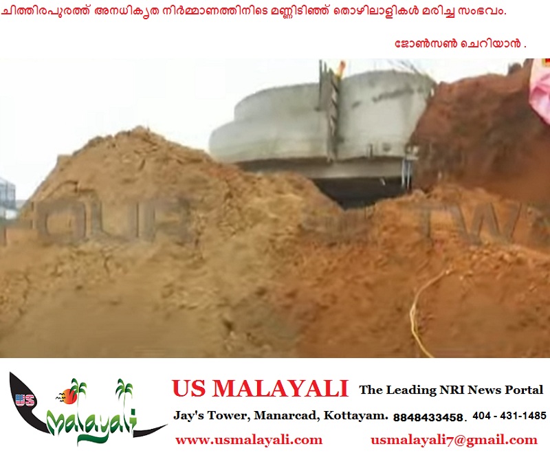 ഇടുക്കി അടിമാലി ചിത്തിരപുരത്ത് അനധികൃത നിർമ്മാണത്തിനിടെ മണ്ണിടിഞ്ഞ് 2 തൊഴിലാളികൾ മരിച്ച സംഭവത്തിൽ റിസോർട്ട് സൂപ്പർവൈസർ കസ്റ്റഡിയിൽ. മിസ്റ്റി വണ്ടേഴ്സ് റിസോർട്ടിൻ്റെ സൂപ്പർവൈസറാണ് കസ്റ്റഡിയിലായത്. ഇയാൾക്കെതിരെ ജാമ്യമില്ലാ വകുപ്പുകൾ പ്രകാരം കേസെടുത്തു. അപകടത്തിൽ റിസോർട്ട് ഉടമയും പ്രതിയാകും. പള്ളിവാസൽ വില്ലേജ് ഓഫീസറുടെ മൊഴിയുടെ അടിസ്ഥാനത്തിലാണ് വെള്ളത്തൂവൽ പൊലീസിന്റെ നടപടി.