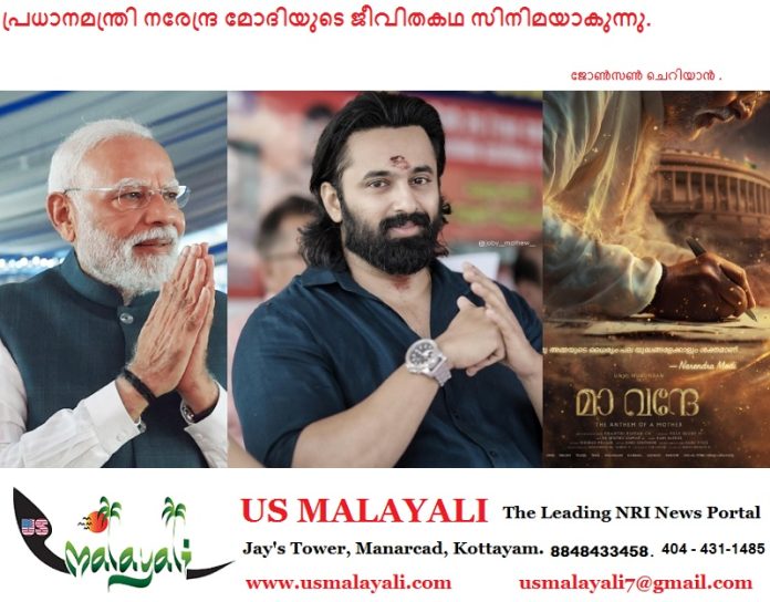 ഇന്ത്യൻ പ്രധാനമന്ത്രി നരേന്ദ്ര മോദിയുടെ ജീവിതകഥ സിനിമയാകുന്നു. നരേന്ദ്ര മോദി ആയി ഉണ്ണി മുകുന്ദൻ വേഷമിടുന്ന ഈ പാൻ ഇന്ത്യൻ ചിത്രം നിർമ്മിക്കുന്നത് സിൽവർ കാസ്റ്റ് ക്രിയേഷൻസിന്റെ ബാനറിൽ വീർ റെഡ്ഡി എം ആണ്. “മാ വന്ദേ” എന്നാണ് ചിത്രത്തിൻ്റെ പേര്. നരേന്ദ്ര മോദിയുടെ ജന്മദിനത്തോടനുബന്ധിച്ചാണ് സിൽവർ കാസ്റ്റ് ക്രിയേഷൻസ് ഈ ചിത്രത്തിന്റെ ഔദ്യോഗിക പ്രഖ്യാപനം നടത്തിയത്.