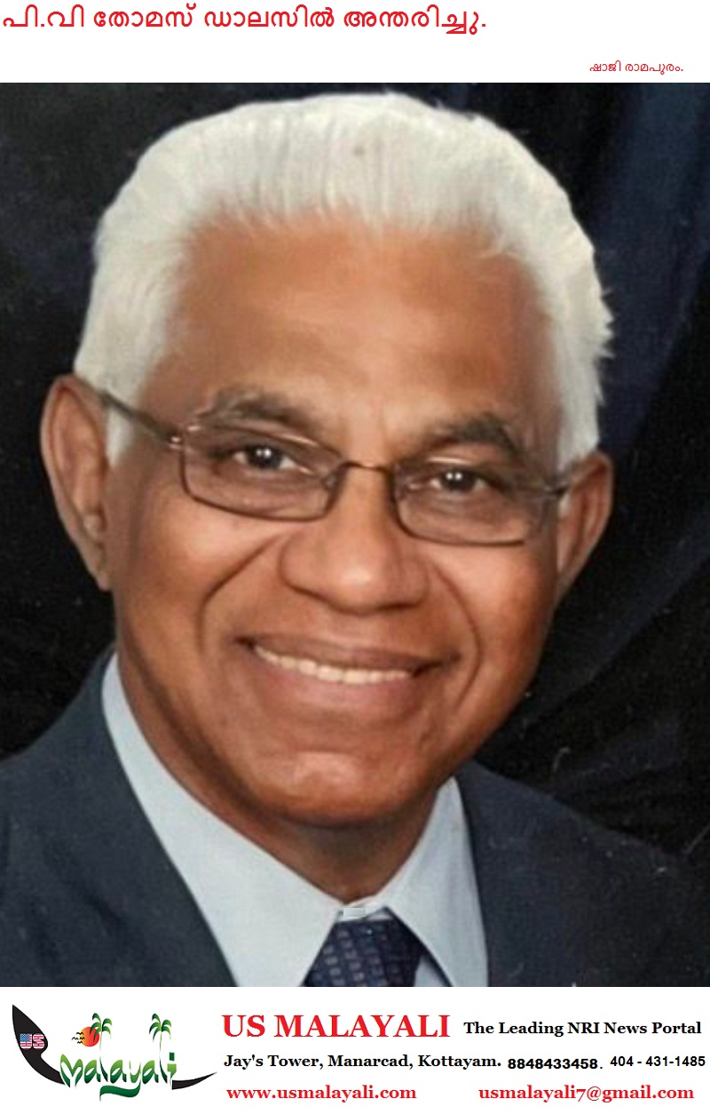 ഡാലസ്: മാർത്തോമ്മാ ചർച്ച് ഫാർമേഴ്സ് ബ്രാഞ്ച് ഇടവകാംഗം പുനലൂർ കറവൂർ പള്ളിച്ചിറയിൽ പി.വി തോമസ് (89) ഡാലസിൽ അന്തരിച്ചു. ഡാലസിലെ ആദ്യക്കാല പ്രവാസി മലയാളിയും, മാർത്തോമ്മാ ദേവാലയത്തിന്റെ തുടക്കക്കാരിൽ പ്രധാനിയുമാണ്.