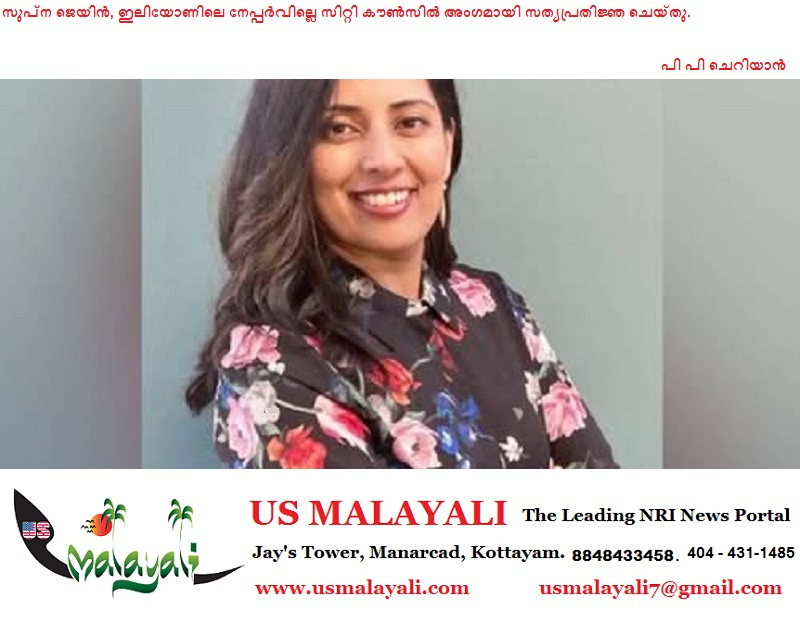 നേപ്പർവില്ലെ – രണ്ടാം തലമുറ ഇന്ത്യൻ അമേരിക്കക്കാരിയും പരിചയസമ്പന്നയായ അധ്യാപികയുമായ സുപ്ന ജെയിൻ, നേപ്പർവില്ലെ സിറ്റി കൗൺസിലിൽ സേവനമനുഷ്ഠിക്കുന്ന ആദ്യത്തെ വനിതയായി സത്യപ്രതിജ്ഞ ചെയ്തു.