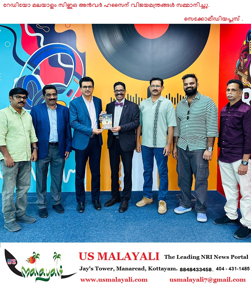 ദോഹ. റേഡിയോ മലയാളം സിഇഒ അന്വര് ഹസൈന് ഡോ.അമാനുല്ല വടക്കാങ്ങരയുടെ വിജയമന്ത്രങ്ങള് സമ്മാനിച്ചു. റേഡിയോ മലയാളം 98.6 എഫ്.എം. സ്റ്റുഡിയോവില് നടന്ന ചടങ്ങില് ഗ്രന്ഥകാരന് നേരിട്ടെത്തിയാണ് പുസ്തകം സമ്മാനിച്ചത്.