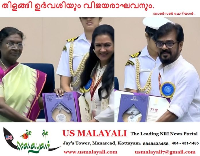 71-ാം ദേശീയ ചലച്ചിത്ര പുരസ്കാരം രാഷ്ട്രപതി ദ്രൗപതി മുര്മുവില് നിന്ന് ഏറ്റുവാങ്ങി അഭിനേതാക്കള്. ദാദാ സാഹേബ് ഫാല്ക്കെ അവാര്ഡ് മലയാളത്തിന്റെ മോഹന്ലാല് ഏറ്റുവാങ്ങി. ഇതുകൂടാതെ അഞ്ച് പുരസ്കാരങ്ങളാണ് മലയാള സിനിമയ്ക്ക് ലഭിച്ചത്. മികച്ച സഹനടിയ്ക്കുള്ള പുരസ്കാരം ഉര്വശിയും സഹനടനുള്ള പുരസ്കാരം വിജയരാഘവനും ഏറ്റുവാങ്ങി. മികച്ച മലയാള ചിത്രം ഉള്ളൊഴുക്കിന്റെ സംവിധായകന് ക്രിസ്റ്റോ ടോമി, പൂക്കാലം എന്ന സിനിമയിലൂടെ മികച്ച എഡിറ്റര്ക്കുള്ള അവാര്ഡ് നേടിയ മിഥുന് മുരളി, നോണ് ഫീചര് സിനിമ വിഭാഗത്തില് എം കെ രാംദാസ് തുടങ്ങിയവര് പുരസ്കാരങ്ങള് ഏറ്റവാങ്ങി. മികച്ച നടനുള്ള പുരസ്കാരം പങ്കിട്ട ഷാരൂഖ് ഖാന്, വിക്രാന്ത് മാസി എന്നിവരും മികച്ച നടിയായ റാണി മുഖര്ജിയും അവാര്ഡുകള് സ്വീകരിച്ചു. ഡല്ഹി വിജ്ഞാന് ഭവനിലായിരുന്നു അവാര്ഡ് വിതരണ ചടങ്ങുകള്.