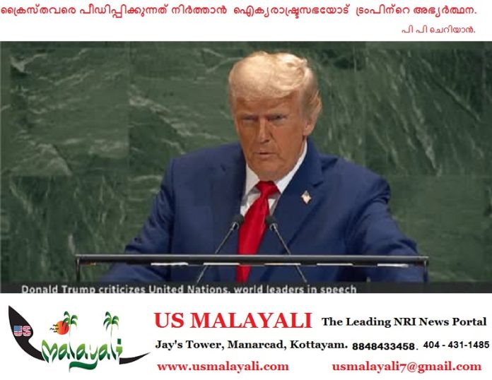 ന്യൂയോർക്: ഭൂമിയിൽ ഏറ്റവും കൂടുതൽ പീഡിപ്പിക്കപ്പെടുന്ന ക്രിസ്തുമതം’ സംരക്ഷിക്കുന്നതിനും ക്രൈസ്തവരെ പീഡിപ്പിക്കുന്നത് നിർത്താനും ട്രംപ് ഐക്യരാഷ്ട്രസഭയോട് അഭ്യർത്ഥിച്ചു.‘