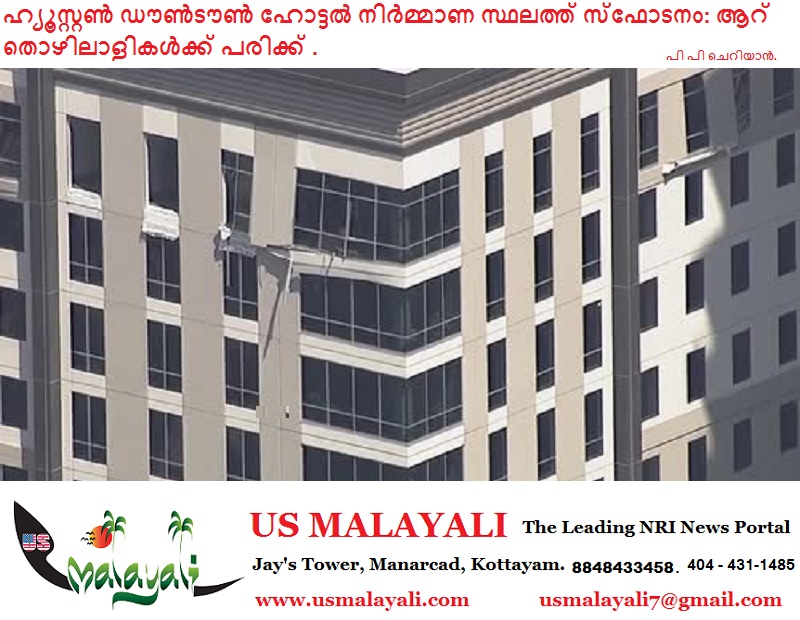 ഹ്യൂസ്റ്റൺ, ടെക്സാസ്: ടെക്സാസ് അവന്യുവിലെ നിർമ്മാണത്തിലിരിക്കുന്ന ഹോളിഡേ ഇൻ ഹോട്ടലിൽ സ്ഫോടനത്തിൽ ആറ് തൊഴിലാളികൾക്ക് പരിക്കേറ്റതായി ഹ്യൂസ്റ്റൺ ഫയർ ഡിപ്പാർട്ട്മെന്റ് (HFD) അറിയിച്ചു.