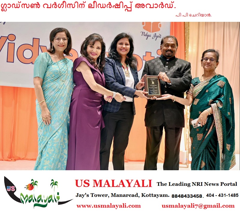 ഷിക്കാഗോ: വിദ്യാജ്യോതി എഡ്യൂക്കേഷന് ഫൗണ്ടേഷന്റെ 2025-ലെ ലീഡര്ഷിപ്പ് അവാര്ഡ് അമേരിക്കന് അസോസിയേഷന് ഓഫ് എന്ജിനീയേഴ്സ് ഓഫ് ഇന്ത്യന് ഒറിജിന്റെ പ്രസിഡന്റ് ഗ്ലാഡ്സണ് വര്ഗീസിന് ലഭിച്ചു.