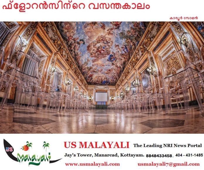 കലാ സാഹിത്യ ആത്മീയ നവോത്ഥാനത്തിന് തുടക്കം കുറിച്ച ടസ്കനിയുടെ തലസ്ഥാനത്തെത്തി. സ്റ്റേഷനില് നിന്ന് പുറത്തിറങ്ങി. ചുറ്റുപാടുകള് ഞാനൊന്ന് കണ്ണോടിച്ചു നോക്കി. സ്റ്റേഷന് മുന്നില് യാത്രികരെ പ്രതീക്ഷിച്ചു ടാക്സി, ബസ്, ട്രാം എല്ലാം കിടക്കുന്നു. സ്റ്റേഷനുള്ളില് അധികം കടകള് കണ്ടില്ല. പുറത്തു ധാരാളം കടകളുണ്ട്. സൂര്യകിരണങ്ങളെ മഞ്ഞണിഞ്ഞ പുകപടലങ്ങള് തടഞ്ഞു നിര്ത്തിയിരിക്കുന്നു. എന്റെയടുത്തുകൂടി മധുരഭാഷണങ്ങളുമായി മൂന്ന് സുന്ദരികുട്ടികള് നടന്നുപോയി.