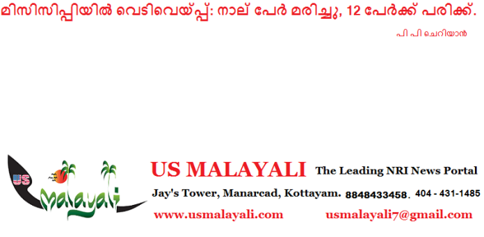 മിസിസിപ്പി : മിസിസിപ്പിയിലെ ലീലൻഡിൽ നടന്ന കൂട്ടവെടിവെയ്പ്പിൽ നാലു പേർ മരിച്ചു, 12 പേർക്ക് പരിക്കേറ്റ,其中 നാല് പേരുടെ നില ഗുരുതരമാണ്.