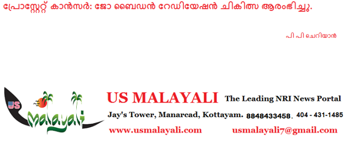 വാഷിംഗ്ടൺ ഡി സി : മുൻ പ്രസിഡന്റ് ജോ ബൈഡൻ ആക്രമണശേഷിയേറിയ പ്രോസ്റ്റേറ്റ് കാൻസറിന് റേഡിയേഷൻ ചികിത്സ ആരംഭിച്ചതായി അദ്ദേഹത്തിന്റെ പ്രതിനിധി അറിയിച്ചു. അടുത്ത മാസം 83 വയസ്സ് തികയുന്ന മുൻ പ്രസിഡന്റിന്റെ വക്താവ് ചികിത്സയ്ക്കുള്ള സമയപരിധി നൽകിയില്ല.ഹോർമോൺ ചികിത്സയും നടത്തി വരികയാണ്.