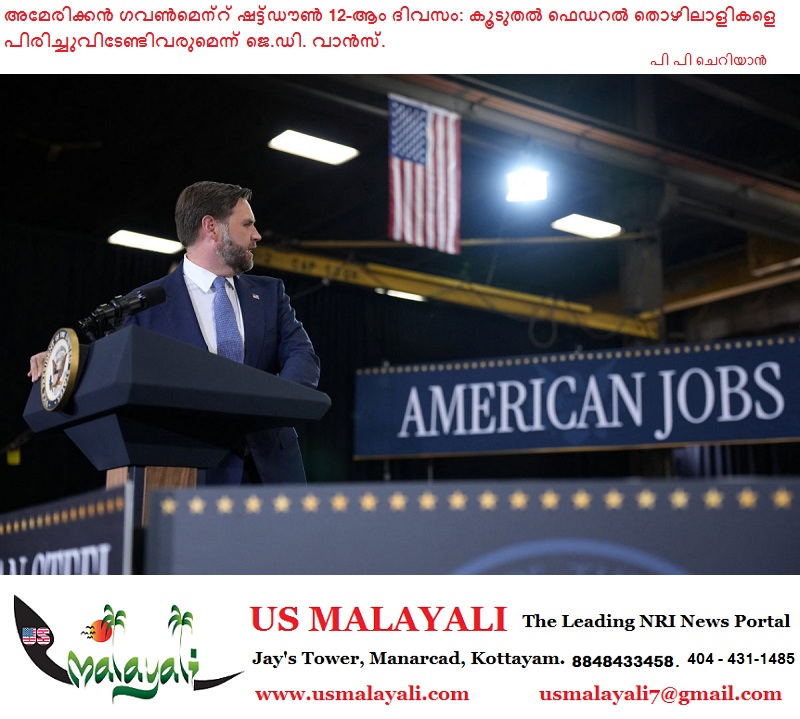 വാഷിംഗ്ടൺ: ഗവൺമെന്റ് ഷട്ട്ഡൗൺ 12-ആം ദിവസത്തിൽ കടക്കുമ്പോൾ, കൂടുതൽ ഫെഡറൽ തൊഴിലാളികളെ പിരിച്ചുവിടേണ്ടിവരുമെന്ന് വിസി. പ്രസിഡന്റ് ജെ.ഡി. വാൻസ് മുന്നറിയിപ്പ് നൽകി. ഭക്ഷ്യസഹായം, സൈനിക വേതനം തുടങ്ങിയവ നിലനിർത്താൻ ശ്രമമുണ്ടെങ്കിലും സമവായം നിലവിൽ കഴിയുന്നില്ല. . ഇപ്പോഴത്തെ സ്ഥിതി തുടരുകയാണെങ്കിൽ ഫെഡറൽ ജീവനക്കാരെ പിരിച്ചുവിടലും നിര്ബന്ധമാകുമെന്ന് അദ്ദേഹം പറഞ്ഞു.