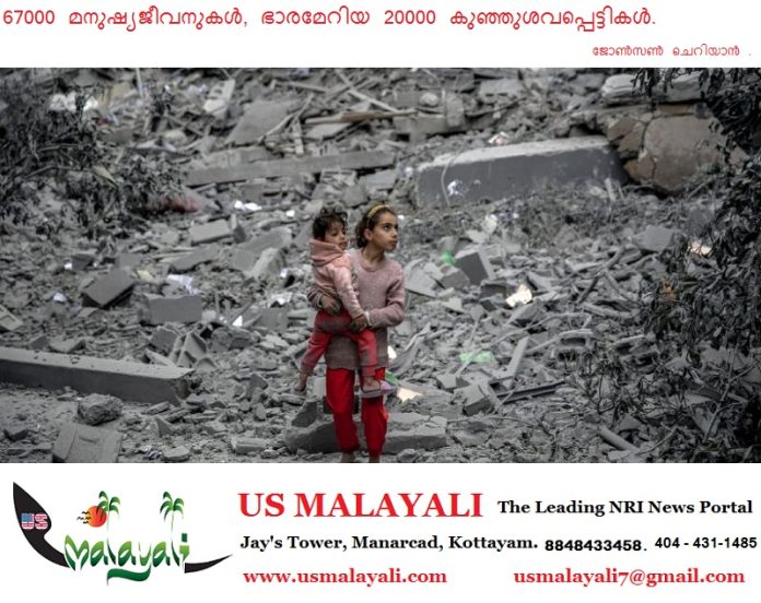 എന്റെ മാതൃഭൂമി വിറ്റതാരെന്ന് എനിക്കറിയില്ലെങ്കിലും അതിന്റെ വിലയൊടുക്കുന്നത് ആരെന്ന് കാണുന്നു എന്ന് പലസ്തീന് ദേശീയ കവി മഹ്മൂദ് ദാര്വിഷ് പറഞ്ഞിട്ട് 50 വര്ഷം കഴിയുന്നു. ഗസ്സ മാതൃഭൂമിയുടെ വില രക്തമായും കണ്ണീരായും ഒടുക്കുന്നത് യുദ്ധം തുടങ്ങി രണ്ട് വര്ഷം കഴിയുമ്പോഴും തുടരുന്നു. നേതാക്കള് ചര്ച്ചകള് തുടരുമ്പോഴും ഗസ്സയില് നിലവിളികള് മുഴങ്ങിക്കൊണ്ടിരിക്കുക തന്നെയാണ്. 67000 മനുഷ്യജീവനുകള്, പരുക്കേറ്റ 170,000 പേരുടെ രക്തവും പ്രാണവേദനയും, ഭാരമേറിയ 20,000 കുഞ്ഞ് ശവപ്പെട്ടികള്, മനുഷ്യര് അധ്വാനിച്ച് കെട്ടിപ്പൊക്കിയ 436,000 കെട്ടിടങ്ങള് എന്നിവ ഗസ്സ വിലയായി നല്കിക്കഴിഞ്ഞു. ഞങ്ങളും ഞങ്ങളുടെ മണ്ണും ഒരേ മാംസവും ഒരേ അസ്ഥികളുമാണെന്ന് ദാര്വിഷിന്റെ മറ്റൊരു കവിത പറയുന്നു. ഗസ്സയുടെ മണ്ണും വായുവും ജീവജാലങ്ങളും കുഞ്ഞുങ്ങളും സ്ത്രീകളും പുരുഷന്മാരും മനുഷ്യര് കെട്ടിപ്പൊക്കിയ കെട്ടിടങ്ങളും അവരുടെ സ്വപ്നങ്ങളും ചേര്ന്നാണ് യുദ്ധത്തിന്റെ വിലയൊടുക്കിയത്. ഗസ്സയുടെ നഷ്ടങ്ങള് ഇനിയെങ്കിലും ലോക മനസാക്ഷിയെ അസ്വസ്ഥമാക്കേണ്ടതുണ്ട്.