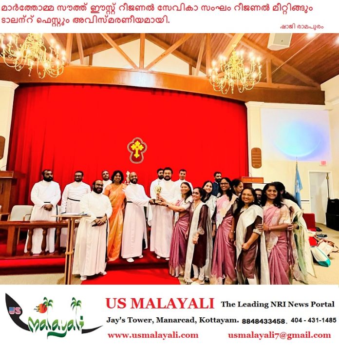 ന്യൂയോർക്ക്: മാർത്തോമ്മ സഭയുടെ നോർത്ത് അമേരിക്ക ഭദ്രാസന സൗത്ത് ഈസ്റ്റ് റീജണൽ സേവികാ സംഘത്തിന്റെ നേതൃത്വത്തിൽ ഒക്ടോബർ മാസം പതിനൊന്നാം തീയതി ശനിയാഴ്ച സെന്റ്.തോമസ് മാർത്തോമ്മ ചർച്ച് ഡെലവെയർ വാലിയിൽ വെച്ച് നടത്തപ്പെട്ട റീജണൽ മീറ്റിങ്ങും ടാലന്റ് ഫെസ്റ്റും അവിസ്മരണീയമായി.